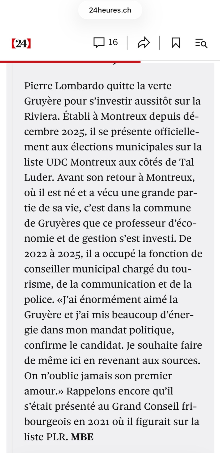 Candidat à la municipalité de Montreux 12 janvier 2026 - 24heures.ch